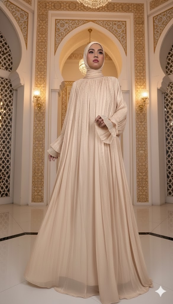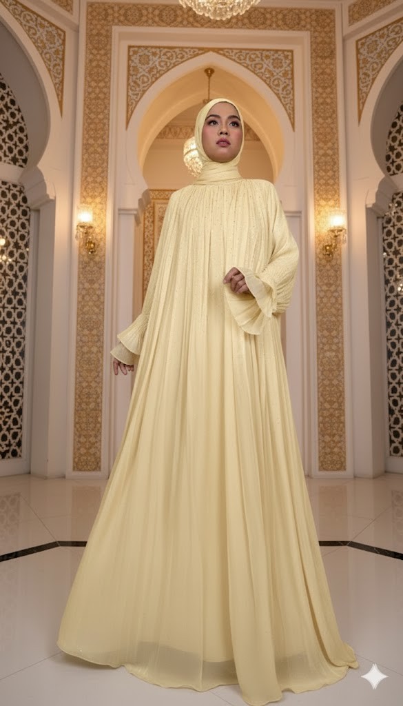 Be exclusive and beautiful with Inaya. Modesty abaya design that makes you look simple yet elegant. Abaya that is created with full waves for the wearer who wants to be simple but look exclusive and stylish.