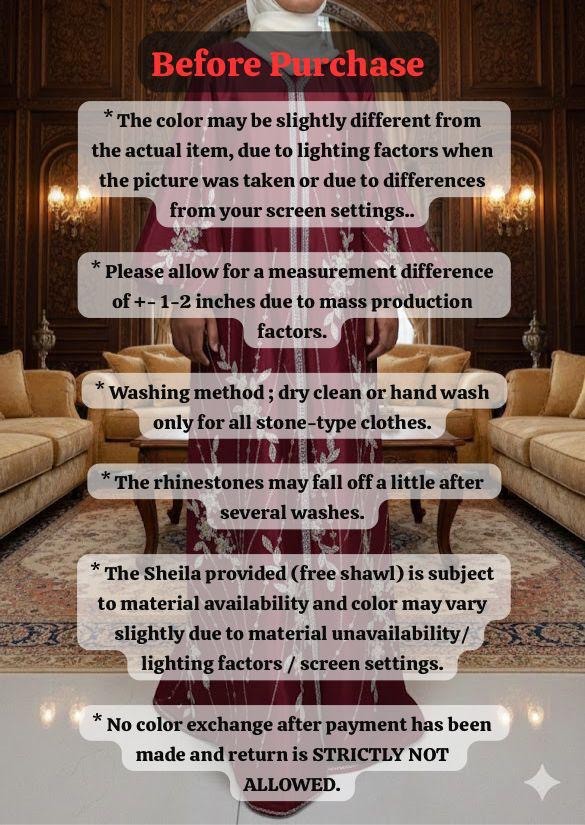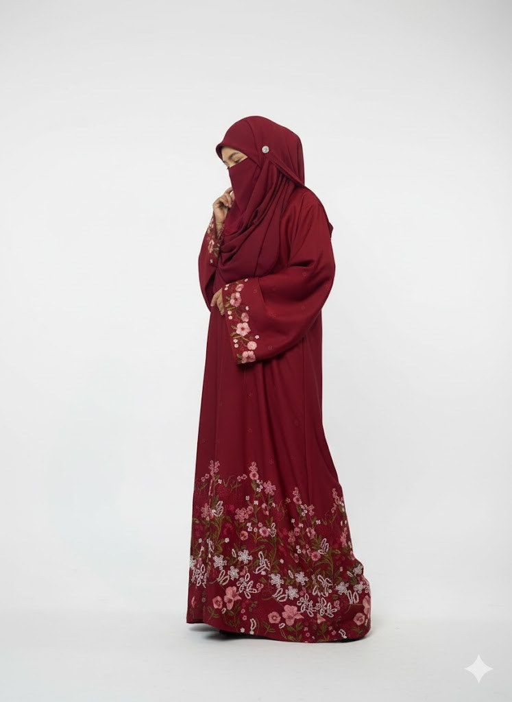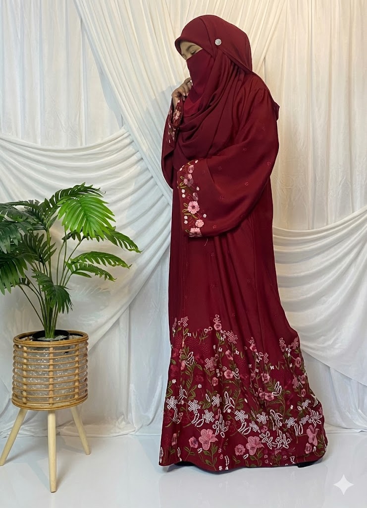 Embroidery that ties the knot of love on Hari Raya Aidilfitri. Beautiful embroidery, suitable for all occasions. Comes in several attractive color variations. Let’s elegantly, stylish and comfort ; with Qaseh Abaya.